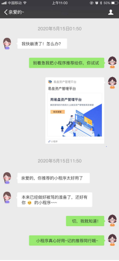 “害!怎么差点把这个忘了!前一段时间我们公司刚推出了有关固定资产的小程序,现在还在免费体验推广阶段,功能什么的挺全面的”