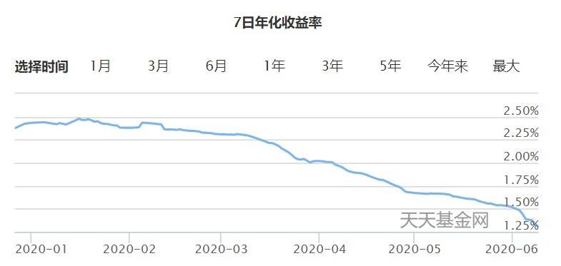 今年以来,“国民理财工具”余额宝的收益率就一直在慢慢下降,6月3日历史性地跌破1.5%之后,就开始了加速下跌,一周时间已经跌到1.33%。